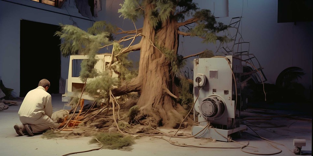 Limit of Control presents a hyper-saturated vision of America’s media landscape, offering a portrayal of society, power, and individual consciousness. Scenes of civil unrest from Hollywood films were sourced using AI and then assembled employing the rapid-fire editing techniques from Brambilla’s 2004 Sync series. Limit of Control is an impressionistic narrative that captures the contemporary spectacle of the American 24-hour news cycle, bookended by AI-generated poetic imagery. The work weaves together Hollywood’s theatrical depictions of protest and civil disobedience with actual news feeds to create a two-channel looping video that blurs the lines between fact and fiction, news and entertainment. The soundtrack is sampled from music cues and sound effects from recordings of actual protests using AI software to create a sound collage as the final composition.